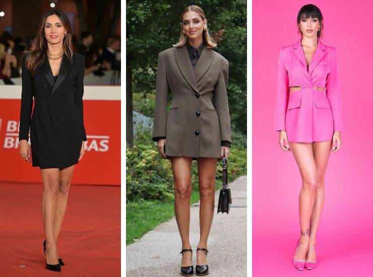 Anche Chiara Ferragni, ad esempio, ne ha indossato uno alla sfilata di Tod’s durante la Milano Fashion Week. Incanalando appieno il trend autunnale, l’imprenditrice digitale ha scelto una sfumatura tortora con dettaglio monopetto, spalle larghe e camicia grigio fumo in raso che spicca dalla leggera scollatura. In aggiunta ha optato per eleganti Mary Jane lucide con cinturino attorno alla caviglia. Belen Rodriguez invece ne aveva seguito l’influenza tempo fa, proponendo una versione di blazer dress dai dettagli cut out e rigorosamente rosa shocking. In questo caso si mescola anche il trend del Barbiecore che non è ancora tramontato. Belen Rodriguez vi aveva abbinato anche décolleté in velluto.