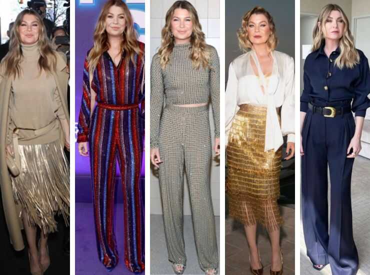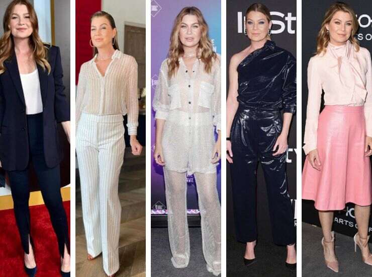 In occasione del party organizzato da Grey’s Anatomy per festeggiare l’episodio 400, l’interprete di Meredith ha sfoggiato un tailleur blu di Wardrobe NYC. Vi ha abbinato gioielli di Melinda Maria. Ospite di Jimmy Kimmel Live, ha indossato un completo gessato che gioca con le trasparenze e accompagnato da strass di Alexandre Vauthier. Sul red carpet degli Emmy Awards 2021, ha scelto un altro completo jumpsuit in velluto ravvivato da linee di strass firmato Elie Saab, collezione Fall 2021. Nel 2020, invece, è apparsa sul tappeto rosso dei People’s Choice Awards con un completo che gioca con le trasparenze, sfumatura avorio, di David Koma. Vi ha abbinato sandali di Jimmy Choo. Sul red carpet degli InStyle Awards 2018, invece, ha preferito un completo jumpsuit monospalla in lattice blu di Max Mara. Infine, per gli Elle Women in Hollywood di quell’anno, ha proposto un completo dalle sfumature di rosa di Calvin Klein.