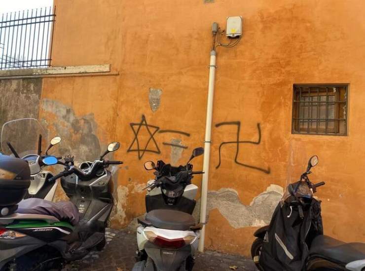 Svastiche e stelle di David al Ghetto di Roma e a Trastevere. Foto Ansa