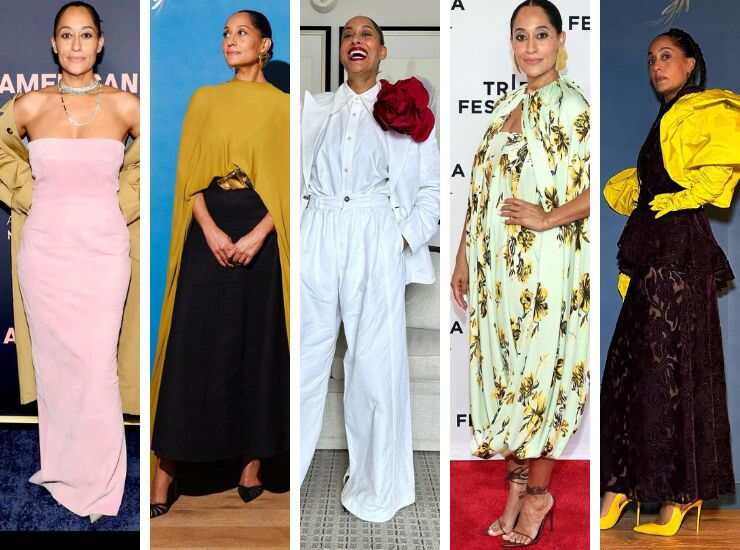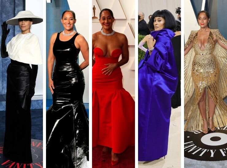 Un look da diva è quello proposto ai Vanity Fair Oscar Party 2023, con una palette di black&white che gioca con velluto e raso firmato Balmain. Stesso red carpet, ma dell’edizione precedente, Tracee Ellis Ross ha indossato un abito aderente in lattice total black di Oscar de la Renta. Vi ha abbinato un collier di diamanti. Sul red carpet degli Oscar, invece, ha scelto un abito rosso corallo di Carolina Herrera con scollatura a petalo. Vi ha abbinato décolleté in velluto di Louboutin. Sul red carpet del Met Gala 2021, invece, ha scelto una creazione di Balenciaga in blu elettrico. Total golden, infine, è il look sfoggiato ai Vanity Fair Oscar Party 2020 firmato Zuhair Murad Couture.