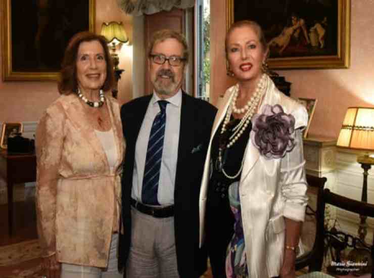 Massimo Bomba insieme alle sue amiche a sinistra la Principessa Josephine Borghese del segno dell’Acquario, a destra la stilista Regina Schrecker del segno dello Scorpione, Courtesy of Massimo Bomba