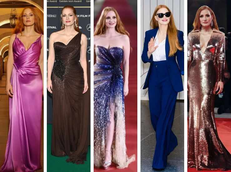 Jessica Chastain, i suoi look sul red carpet sono d’ispirazione per Natale