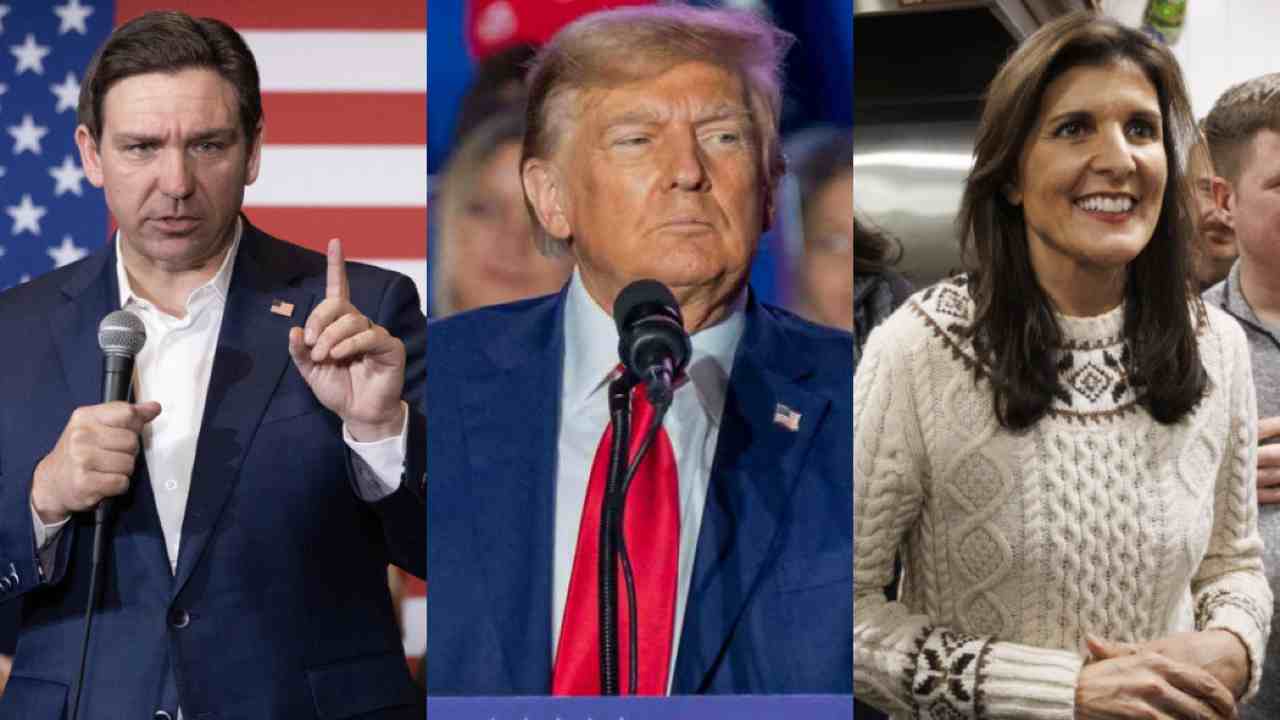 Da sin., Ron Desantis, Donald Trump, Nikki Haley. Foto Ansa/Epa/VelvetMag