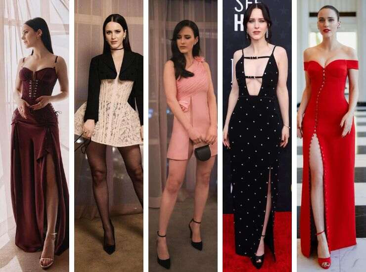 In occasione dell’after party organizzato agli Emmy Awards, ha scelto una creazione scenografica black&white ma ancora una volta vintage di Moschino. L’abito bianco con ricami in pizzo presenta una gonna a trapezio, accompagnata da un micro blazer. In occasione degli MPTF organizzati sempre ad Hollywood, ha sfoggiato un minidress rosa cipria monospalla con corpetto drappeggiato di Giambattista Valli Paris. Vi ha abbinato décolleté di Aquazzura. In velluto, rigorosamente nero ma ravvivato da perle all over è l’abito aderente scelto per i Critics’ Choice Awards 2024. Il long dresso con profonda scollatura è firmato Givenchy. Vi ha abbinato gioielli di Pomellato. Invece sul tappeto rosso dei Golden Globes ha scelto un abito ton sur ton. Una creazione di Sergio Hudson, rosso fragola, con scollo a barchetta. Vi ha abbinato sandali con plateau di Christian Louboutin.