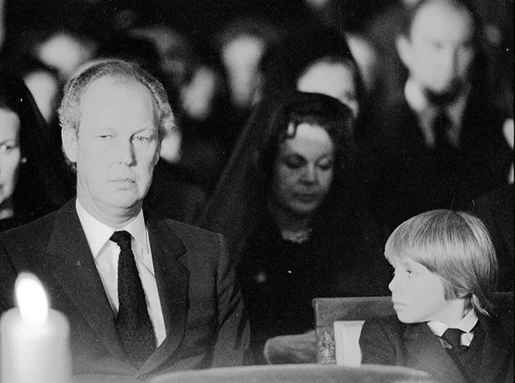 Ansa – Vittorio Emanuele assiste con il figlioletto Emanuele Filiberto, alla cerimonia funebre per suo padre Umberto II di Savoia, nell’abbazia di Altacomba; dietro di loro le sorella del principe, Maria Gabriella di Savoia (S), Maria Beatrice di Savoia, Hautecombe, 24 marzo 1983.