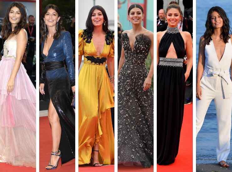 Il 2019 è stato anche l’anno della Mostra del Cinema di Venezia per Alessandra Mastronardi. In qualità di Madrina di quell’edizione, ha partecipato a numerosi red carpet spaziando tra colori e maison differenti. Uno dei più romantici è il long dress degradè dalle sfumature di rosa con gonna a balze in plissè di Gucci. O ancora il long dress aderente tempestato di paillettes con top blu elettrico e gonna total black firmato Etro. Ed è ancora Gucci l’abito giallo sole, in raso, con decorazioni gothic chic total black che accompagnano la scollatura. Uno dei più fiabeschi è sicuramente quello grigio fumo su trama nude firmato Giorgio Armani Privé. L’abito è completamente rivestito di cristalli in rilievo con aggiunta di rouches ad altezza scollatura. Ed è sempre Armani il completo jumpsuit total white indossato per il battesimo in Laguna. Per la cerimonia di chiusura, infine, ha sfoggiato un abito nero con dettagli cut out e colletto gioiello di Prada. Vi ha abbinato gioielli Chopard.