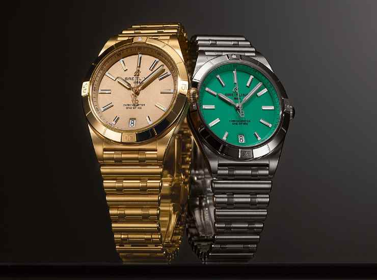 I quadranti degli orologi Chronomat Automatic 36 Victoria Beckham mostrano colori ispirati alla tavolozza di moda primavera/estate 2024 della designer. Gli orologi in acciaio inossidabile sono disponibili con quadranti blu notte, menta piperita o grigio tortora, ciascuno decorato con indici di diamanti coltivati in laboratorio. I quadranti per le versioni in oro sono blu notte, verde menta piperita o sabbia e presentano anche indici di diamanti coltivati in laboratorio. Per una svolta divertente, le iniziali di Victoria Beckham sono sulla punta della lancetta dei secondi.