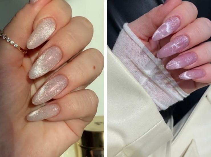 Adatta ad ogni tipologia di unghia (a prescindere quindi dalla forma e dalla lunghezza), la Silk Manicure è accessibile e flessibile perché, come già detto, si adegua ad ogni circostanza senza risultare mai fuori luogo. Questa tipologia di manicure punta ad una superficie liscia e lucida che ricorda per l’appunto la seta. Per realizzarla bisognerà partire da una base neutra con un coat trasparente e scegliere una palette non troppo energetica. Su TikTok predominano soprattutto le sfumature di rosa, ma piace anche il Peach Fuzz, colore Pantone del 2024. Così come anche l’azzurro tendente al ghiaccio convince.