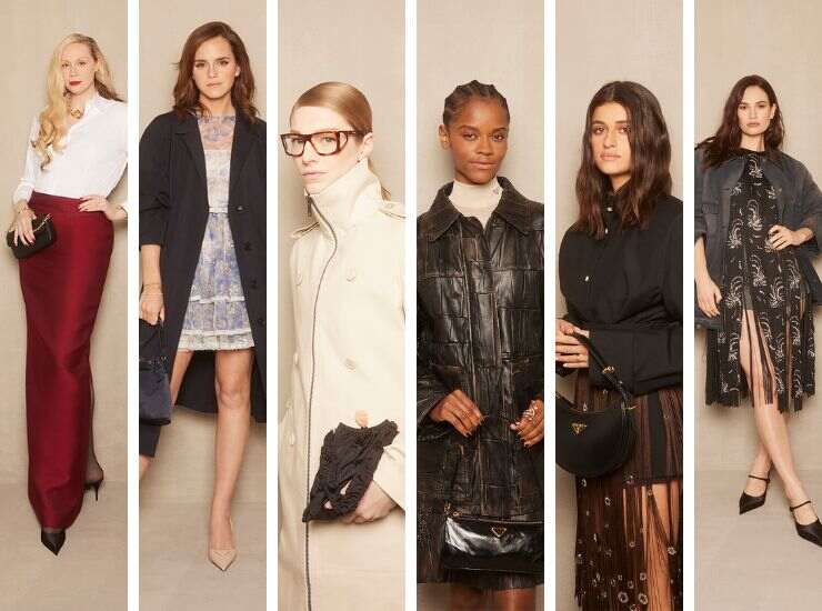 Prada non rinuncia alle sue ambassador ultra glam come Emma Watson, di ritorno a Milano nel suo minidress con delicati drappeggi e sfumature blu, accompagnato da un trench e décolleté nude. Presente anche Gwendolyne Christie, fasciata in una gonna in raso rosso rubino accompagnata da camicia total white. Per Hunter Schafer invece il look è color panna: un trench a collo alto. Letitia Wright ha preferito un blazer dress in pelle total black di Prada, mentre Lily James un minidress con gonna plissè effetto cut out. Per Anya Chalotra, invece, si gioca con lo stile vedo-non-vedo, a trama floreale e camicia total black.