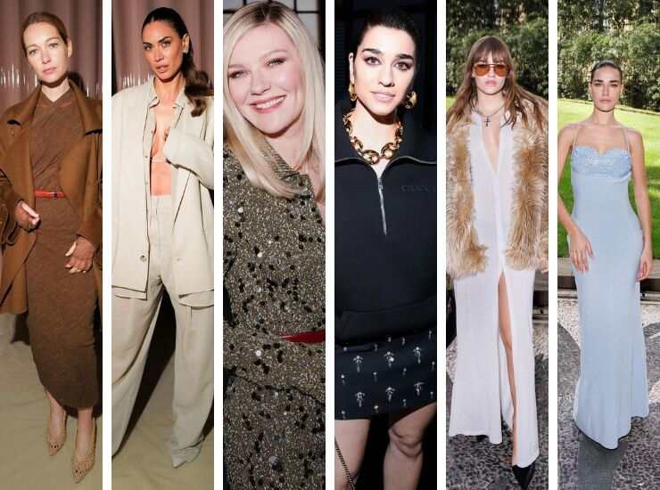 Cristiana Capotondi ha optato per una palette total brown per la sfilata di Philosophy di Lorenzo Serafini. Melissa Satta, invece, ha preferito un completo sabbia che cade morbido sulla silhouette. Kirsten Dunst torna alla fashion week milanese per Gucci e indossa un long dress gioiello della maison dalle sfumature in oro.