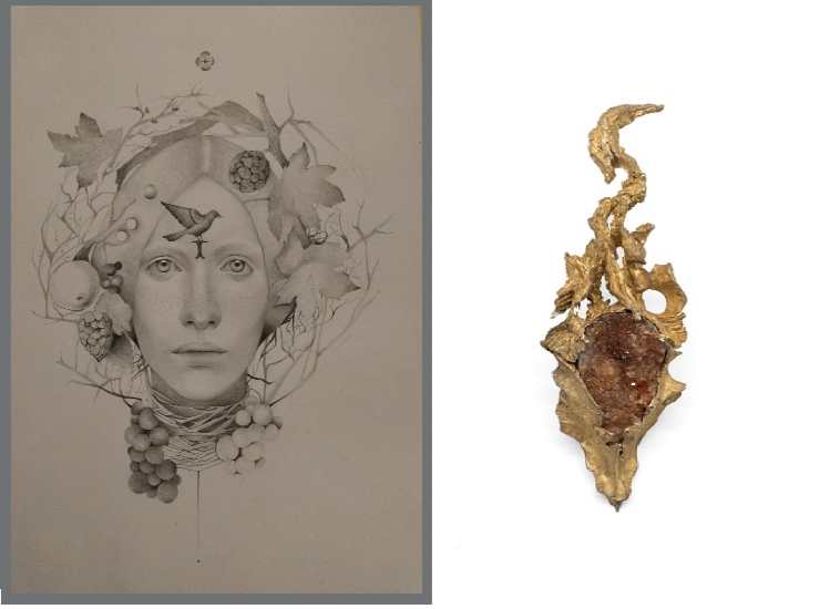 Alfonsi, classe 1980, realizza i suoi lavori rifacendosi ad una tecnica antichissima risalente al 1400, la pittura all’uovo. Non solo la tecnica, ma anche le sue figure richiamano soggetti antichi, figure araldiche che rimandano al Rinascimento toscano e fiammingo nonché ai Preraffaelliti di Dante Rossetti. Partendo dai capisaldi del dipinto, il pittore realizza immagini singolari, senza tempo e senza terra, che catturano lo sguardo. Dalle sue tavole emergono lo stato d’animo, l’unicità e la differenza dei ritratti, rappresentati con maestria ed eleganza. Durante il periodo di esposizione di Sinopie, giovedì 21 marzo 2024 sarà inaugurata anche la mostra del vincitore della Roma Jewelry Week 2023, Francesco Ridolfi, che si confronterà con le creazioni di Emiliano Alfonsi e degli altri artisti residenti di Incinque Jewels.