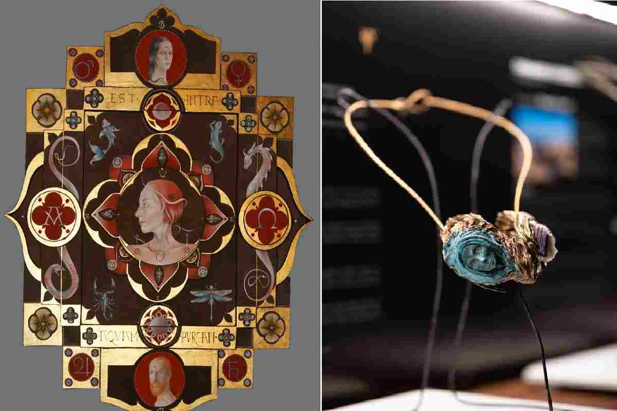 da sinistra una creazione di Emiliano Alfonsi e l’opera Vite parallele di Francesco Ridolfi, Courtesy of Press Office