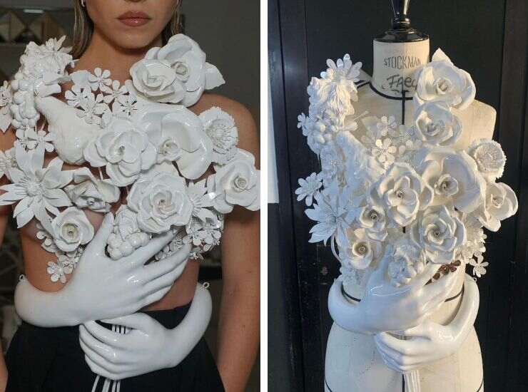 Gli abiti-scultura hanno preso sempre più piede in quel di Hollywood e il merito va a diverse maison, come Schiaparelli che in più di un’occasione ha dimostrato che un abito può essere al tempo stesso accessorio fashion. Sydney Sweeney ha sposato questa filosofia. Presso l’Egyptian Theatre Hollywood, per la première di Immaculate, ha sfoggiato un look scultura che richiama tutta l’attenzione su di sé. Il suo top, rigorosamente bianco latte, è un vero e proprio bouquet in tessuto, che avvolge il busto intrecciandosi e arrampicandosi sulla silhouette. Attorno alla vita, due braccia che stringono a sé i fiori, come una sorta di abbraccio. Il top scultura copre le zone sensibili del busto ed è una creazione originale di Balmain.
