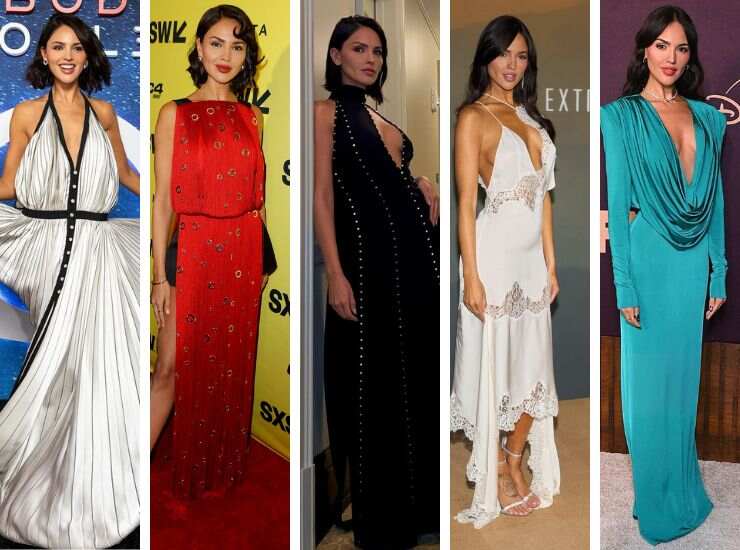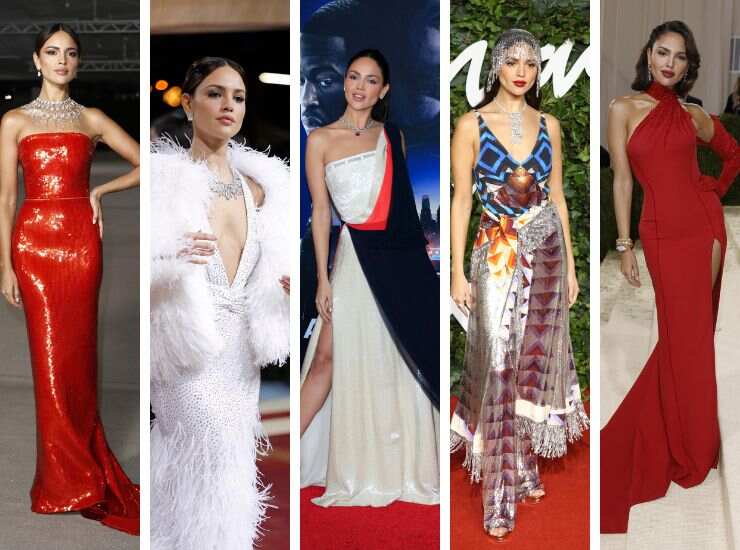 Agli Academy Museum Gala del 2022, ha sfoggiato una creazione in lattice total red con micro paillettes, senza spalline, di LaQuan Smith. Vi ha abbinato un collier drammatico di Bulgari. Sul red carpet del Met Gala 2022, invece, Eiza Gonzalez ha proposto un long dress total white tempestato di piume e strass all over, accompagnato da un boa di piume di Michael Kors. Di Fendi Couture è l’abito champagne accompagnato da una mantella multicolore proposta alla première di Ambulance nel 2022. Per i Fashion Awards 2021, invece, Eiza Gonzalez ha optato per una creazione geometrica e colorata di Paco Rabanne. Vi ha abbinato un collier di Bulgari. Infine, al Met Gala 2021, ha proposto un abito rosso rubino di Versace.