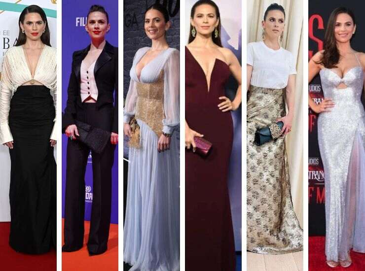 Sul red carpet dei BAFTA 2023, Hayley Atwell ha indossato un cut out dress con gonna in raso total black e crop intrecciato avorio di Cong Tri. Vi ha abbinato preziosi di Bulgari. Per i British Independent Film Awards 2022, invece, ha preferito un tuxedo black&white di Catherine Walker. All’evento dedicato ai 60 anni di James Bond, ha scelto un look pervinca in chiffon accompagnato da un bustino rigido in oro di Sabina Bilenko Couture. Sul tappeto rosso del London Film Festival 2022, l’attrice ha optato per un abito porpora di Suzanne Neville. Ai Royal Academy of Arts Summer Exhibition 2022, Hayley Atwell ha accompagnato la gonna a campana in oro con una t-shirt total white. Il look è firmato Edeline Lee. Infine quell’anno ha partecipato anche alla première di Doctor Strange nel Multiverso della Follia optando per un altro look di Sabina Bilenko: un abito d’argento tempestato di paillettes.