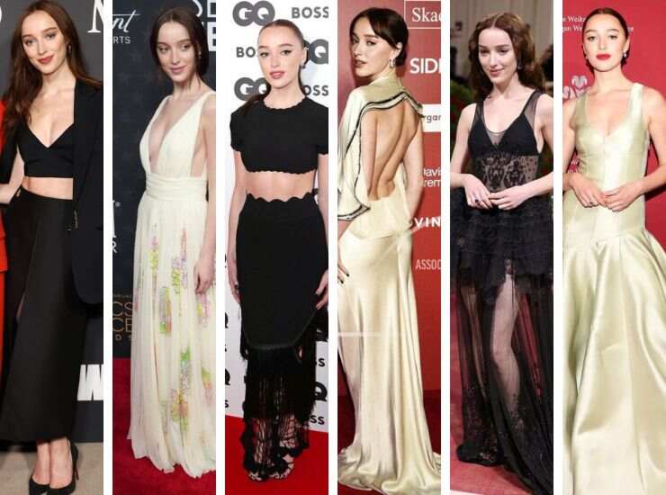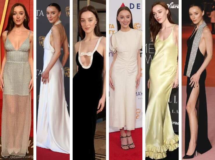 Per la promozione di Fair Play in casa Netflix, ha sfoggiato un completo tre pezzi total black con crop top e blazer poggiato sulle spalle di Louis Vuitton. Ed è ancora della maison l’abito champagne ravvivato da decorazioni floreali e plissè proposto sul red carpet dei Critics’ Choice Awards 2023. In total black per i GQ Man of the Year 2022, un completo firmato Victoria Beckham. In raso è l’abito oro scelto per gli Albie Awards 2022 firmato Louis Vuitton. E ancora Phoebe Dynevor ha optato per la stessa palette e la stessa maison per i Prince’s Trust Gala. Infine, al Met Gala 2022, ha optato per un total black di Louis Vuitton con pizzo, chiffon e strass.