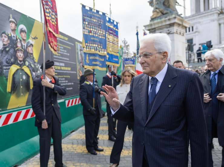 Sergio Mattarella alla Tomba del Milite Ignoto a Roma. Foto Ansa/Quirinale