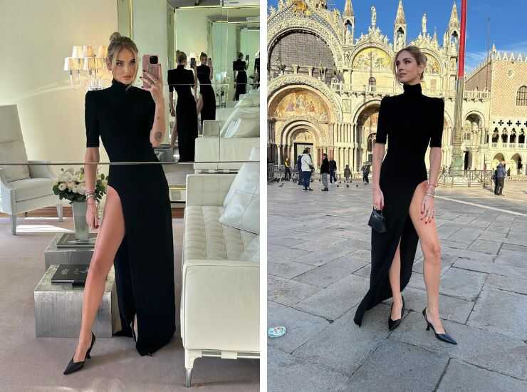 Chiara Ferragni si è chiusa in un silenzio blindato nelle ultime settimane, partito dopo il rientro dalle vacanze di Pasqua con i figli a Dubai. Poi, circa una settimana fa, è riapparsa sui social fasciata in un abito aderente al punto giusto, con maniche ad altezza gomito, collo alto ed uno spacco vertiginoso ad altezza fianchi che lascia ben libera la gamba tonica. Un look total black, accompagnato da décolleté ton sur ton e uno chignon con due ciuffi laterali che per molti è stato associato al Revenge Dress. Carico di sensualità, l’abito dell’imprenditrice firmato Monot ha immediatamente riacceso i riflettori sul proprio account Instagram. L’ha indossato durante il soggiorno a Venezia, città raggiunta per assistere alla mostra Musei delle Lacrime del suo amico Francesco Vezzoli.