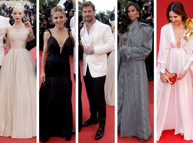 Anya Taylor-Joy sa sempre come rubare l’attenzione sul red carpet, anche a Cannes. Per l’anteprima di Furiosa, ha scelto un abito champagne, naturalmente di Dior, maison che le sta particolarmente a cuore e che l’ha scelta come sua ambassador. L’abito senza spalline propone un corpetto aderente e una gonna che cade morbida lungo i fianchi, arricchito da strass. Vi ha poi abbinato un collier futuristico di diamanti firmato Tiffany&Co, in pendant con gli orecchini. Chris Hemsworth per l’occasione ha preferito un look black&white di Tom Ford. Al suo fianco la moglie Elsa Pataky, fasciata in un abito in raso total black con scollatura profonda a V che porta la firma di Armani Privé.