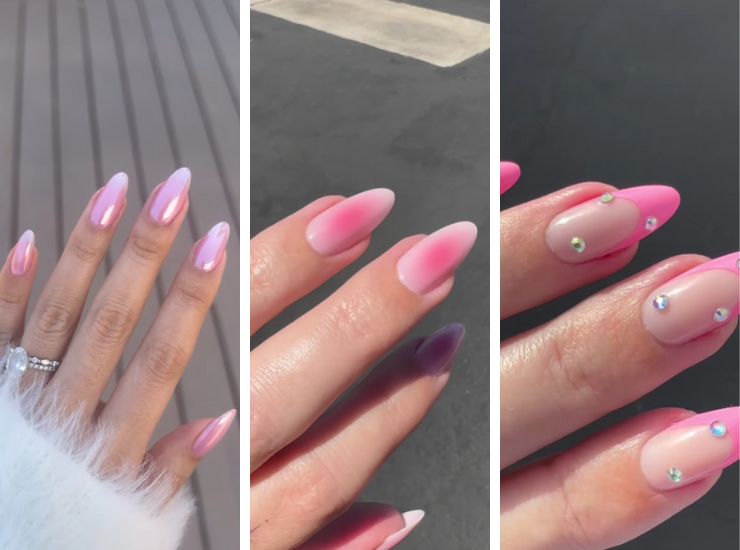 Sono tantissime le influenze emerse dal web. Basterà sbirciare un feed Instagram o TikTok delle più seguite nail artist del momento per rendersi conto che il bubblegum è tornato e non ha intenzione di andare da nessuna parte. Si siederà comodo e troverà un modo per conquistare le unghie dei beauty addicted. Anche Zola Ganzorigt, nail artist che si occupa di star come Sydney Sweeney e Kendall Jenner, ha realizzato una sua versione di unghie rosa bubblegum aggiungendo una nota perlata che rende le sue unghie a mandorla ancor più luminose. Un’alternativa chic, adatta ad ogni occasione, che smorza quell’effetto caramelloso.