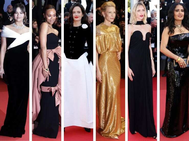 L’arrivo di Selena Gomez a Cannes ha immediatamente infiammato il web, ancor prima della sua apparizione ufficiale sul quinto red carpet del Festival. L’attrice ha scelto per l’occasione un long dress in velluto nero, con scollatura a barchetta ravvivata da una lingua in raso di bianco drappeggiato. Il look porta la firma di Saint Laurent. Vi ha abbinato un collier di diamanti scenografico in pendant con orecchini a lisca di pesce di Bulgari. Anche Zoe Saldana è riapparsa al Festival di Cannes, indossando una creazione di Saint Laurent. In questo caso l’attrice ha preferito un long dress nero ravvivato da una mantella in raso rosa antico che si avvinghia all’abito con fiocchi romantici.