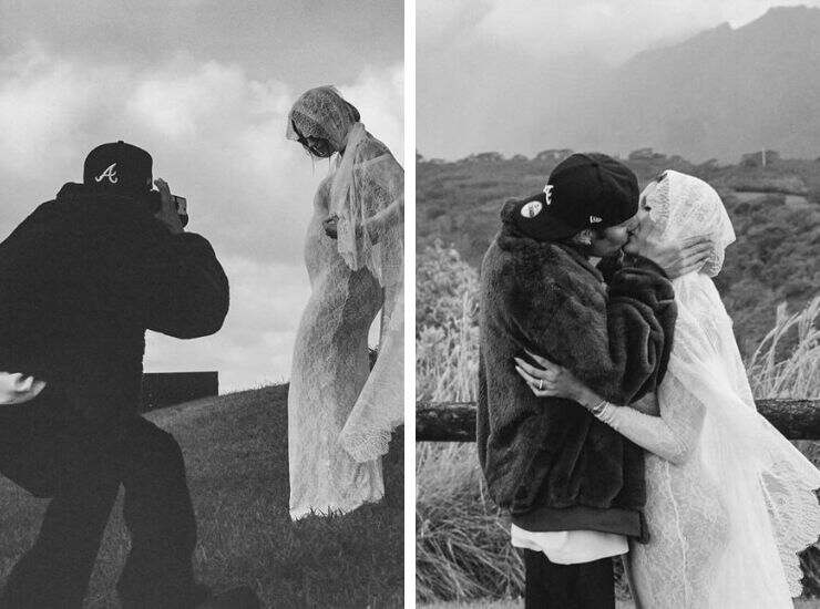 Hailey e Justin Bieber annunciano la gravidanza: la modella indossa un abito bianco da sposa per l’occasione