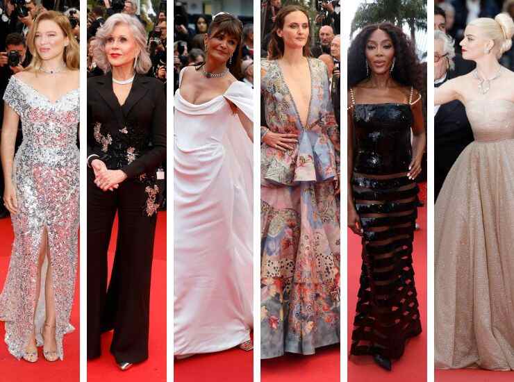 Una selezione difficile, quest’anno, considerato il numero elevato di star glam che hanno calcato il tappeto rosso della Croisette. Partendo da principio, in occasione della cerimonia d’apertura Lea Seydoux ha illuminato il Festival fasciata in un abito tempestato di paillettes argentate di Louis Vuitton. Vi ha abbinato dei sandali argento dalla sfumatura metallica. Jane Fonda non si smentisce: torna a Cannes in un completo jumpsuit total black con una decorazione floreale di paillettes che si estende ad altezza busto. Il look porta la firma di Elie Saab. Vi ha abbinato un long coat floreale a trama caramello di Forte_Forte.