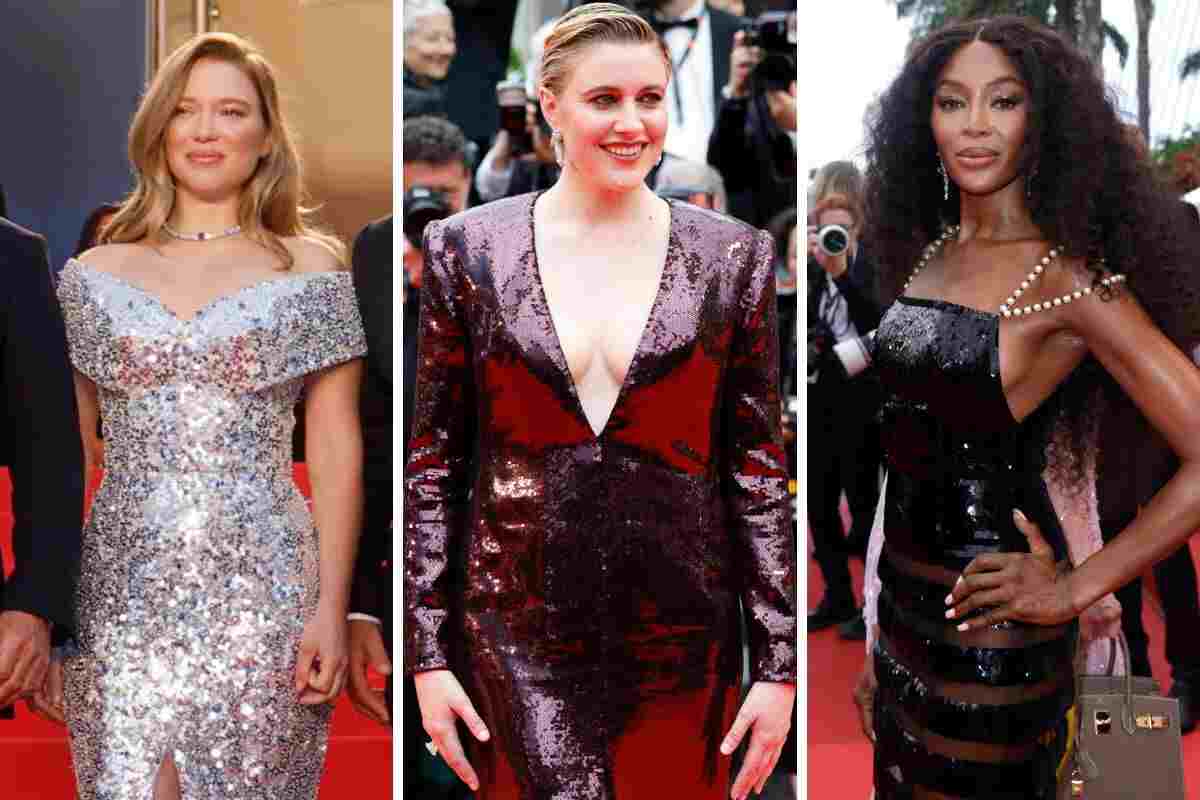 Paillettes di ogni colore, quelle proposte a Cannes, così come un tocco gioiello che ha reso ancor più radiosi i look per l’occasione. Un esempio della cerimonia d’apertura è quello di Léa Seydoux, fasciata in un abito d’argento ma interamente rivestito di paillettes luccicanti firmato Louis Vuitton. Un look radioso effetto gioiello che ha rubato l’attenzione. Come quello proposto da Greta Gerwig, seppur in una tinta più avvolgente, sfumatura cherry coke, uno dei trend beauty del 2024. Nel suo caso il look porta la firma di Saint Laurent. Chi ha saputo mescolare entrambe le tendenze, paillettes e aggiunta gioiello, è Naomi Campbell con un abito vintage le cui spalline sono rivestite di perline. Il look porta la firma di Chanel.