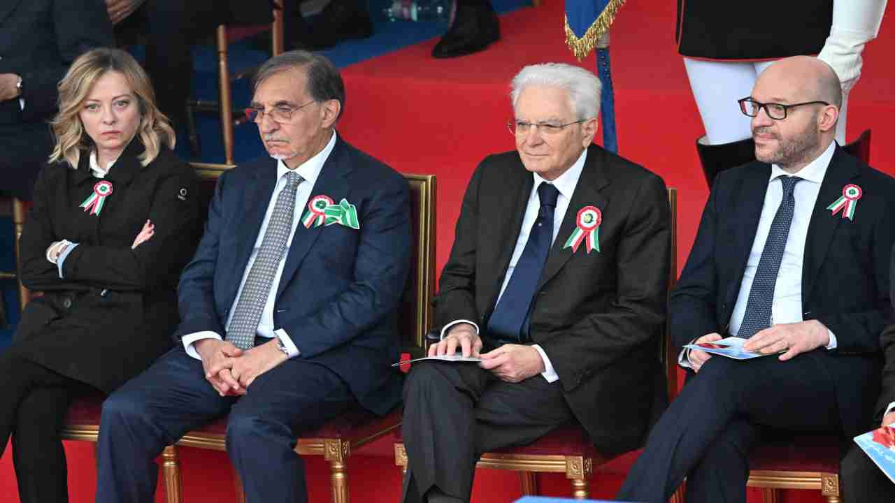 Presenti a piazza Venezia la premier Giorgia Meloni con i presidenti di Senato e Camera, Ignazio La Russa e Lorenzo Fontana, e il il ministro della Difesa Guido Crosetto. Fra gli intervenuti, anche il ministro degli Esteri, Antoni Tajani, e quello della Giustizia, Carlo Nordio. Lo spettacolo delle Frecce tricolori ha accompagnato la cerimonia: la squadra aerea acrobatica ha sorvolato Roma transitando sopra l’Altare della Patria. “Celebrare i 78 anni della nascita della Repubblica italiana richiama i valori della nostra identità” ha dichiarato Sergio Mattarella nel messaggio al capo di stato maggiore della Difesa, ammiraglio Giuseppe Cavo Dragone.