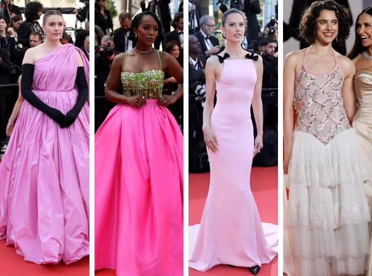 Anche Alessandra Ambrosio ha raggiunto di nuovo la Croisette, proponendo un look rosa pastello in raso, con spalline sottili ravvivati da fiocchi neri di Peter Dundas, unendosi al trend. A ravvivare il look ci pensano i preziosi di Pomellato. Ultra delicato, appena accennato, è invece il Barbiecore di Margaret Qualley. Il suo body con ricami floreali rincorre sfumature di Rosa che ricorda più il Balletcore, unito alla gonna a balze e le ballerine tempestate di paillettes. Aja Naomi King invece ha puntato tutto sulla gonna vaporosa, ma rosa shocking di Miu Miu.