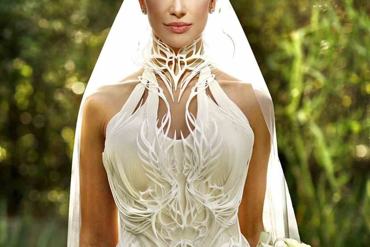Iris van Herpen ha creato il suo primo abito da sposa che unisce tradizione couture ed elementi high-tech: ha proposto il suo primo wedding dress stampato in 3D.