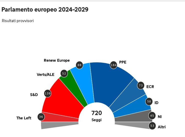 Stati Uniti d’Europa e Azione sono sotto lo sbarramento del 4% e non avranno neanche un seggio al Parlamento europeo. Il partito di Renzi, Bonino e Maraio ha il 3,73%. Quello di Calenda il 3,31%. Restano fuori dall’Europarlamento le altre liste, tra cui Pace terra dignità di Santoro, Liberta-Sud chiama Nord di De Luca e Castelli, Alternativa popolare di Bandecchi e Democrazia Sovrana popolare di Rizzo.