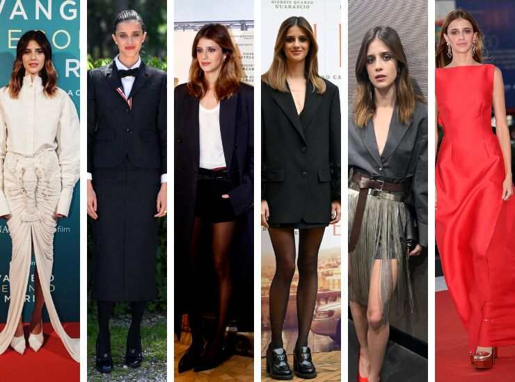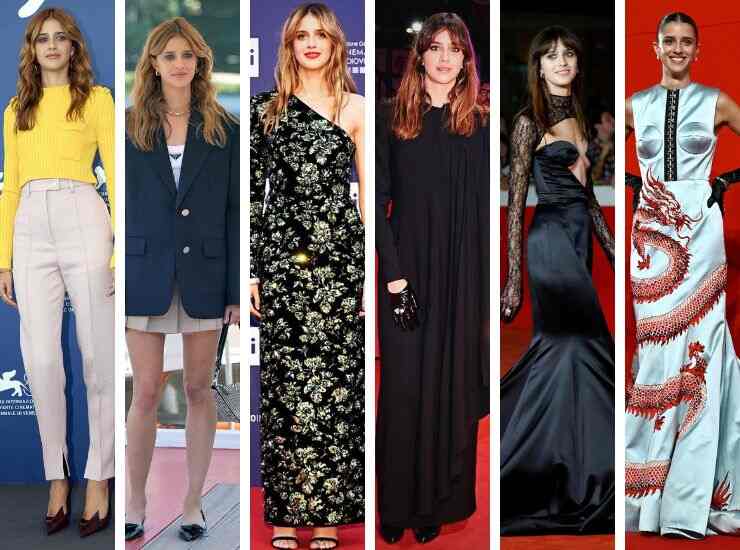 Al photocall, poco prima, ha scelto sempre Prada ma fasciata in un maglione a costine giallo canarino e pantaloni sigaretta rosa pastello. Per l’arrivo in Laguna, invece, ha optato per un look Prada sui toni del blu. Ai David di Donatello 2023, invece, ha preferito un look floreale a trama tota black, con dettaglio monospalla e firmato Gucci. Anche in questo caso i preziosi sono di Pomellato. Alla Berlinale 2023 è ancora total black, ma il suo è un abito mantella con leggeri drappeggi di Gucci. E non cambia palette neppure alla Festa del Cinema di Roma 2022. Per l’occasione gioca con raso e pizzo, sempre Gucci. Stessa maison, ma diversa location. Alla Mostra del Cinema di Venezia 2022, Benedetta Porcaroli conquista il red carpet in un abito pastello in raso della maison.