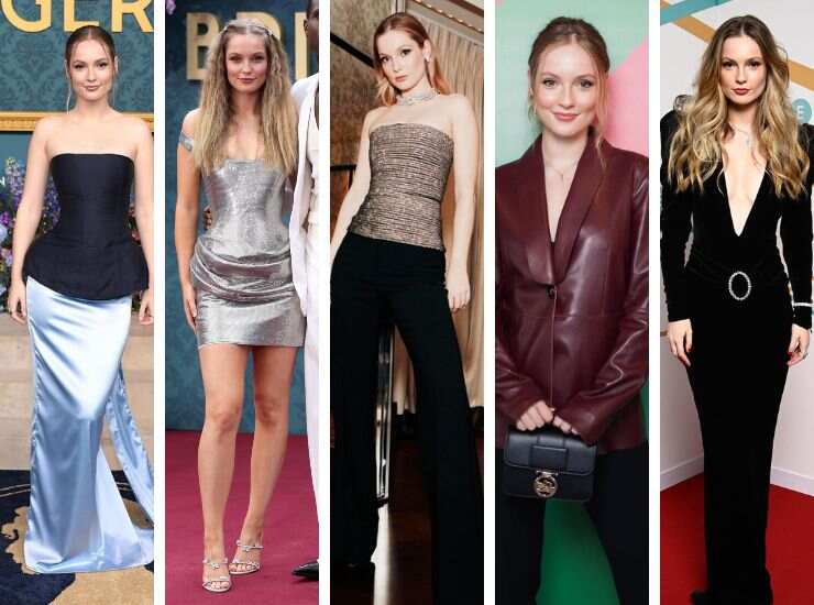 Oltre ad essere un’attrice con un futuro radioso nel mondo dell’intrattenimento, Hannah Dodd ha dimostrato di avere già la stoffa per essere definita fashion icon. Su ogni red carpet propone delicatezza e audacia al tempo stesso. Ad esempio, in occasione della recente première newyorkese di Bridgerton 3, ha optato per un look che strizza l’occhio all’epoca Regency. La sua gonna in raso azzurro pastello con strascico richiama il bustier rigido blu notte. Si tratta di un look costum di Ellie Misner a cui ha abbinato preziosi di Matilde Jewellery. O ancora, sul red carpet della première di Londra per Bridgerton 3, ha optato per un minidress d’argento.