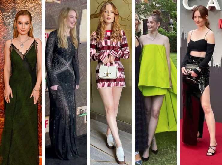 Per l’occasione ha scelto un long dress verde oliva con ricami in pizzo di Victoria Beckham. Alla première di Enola Holmes 2 a New York, la Dodd ha optato per un abito aderente a trama geometrica total black che gioca con le trasparenze e propone un maxi spacco lato schiena. Si tratta di un una creazione di Roberto Cavalli. Impegnata con il press tour di Flowers in the Attic: The Origin, ha indossato un look di Tods: un minidress a trama geometrica. Verde lime è il long dress dal taglio asimmetrico con lungo strascico scelto per Bulgari. Porta la firma di Carolina Herrera. Infine, all’anteprima di Anatomia di uno scandalo a Londra, ha scelto un completo due pezzi total black di David Koma.