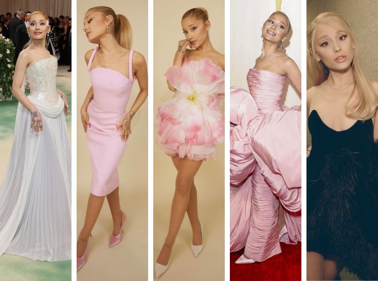 Una delle sue recenti apparizioni sul red carpet risale a pochi mesi fa, in occasione del Met Gala 2024. Ariana Grande ha seguito alla lettera il tema del risveglio della bellezza e del glam, sfoggiando una creazione fatata di Loewe. Il suo look costum richiama l’iridescenza della madreperla, sfoggiando un bustier modellato con delicatissimi ricami floreali e una gonna plissè ampia e morbida che ripropone sfumature d’arcobaleno pastello. Ad occuparsi del suo look la stylist Mimi Cuttrell. Il press tour di Wicked è partito già da tempo e la popstar non ha perso occasione di sfoggiare tutto il suo tocco glam: ad esempio, al CinemaCon, l’attrice ha optato per un midi rosa pastello in raso di Atelier Versace a cui ha abbinato delle décolleté in velluto ton sur ton di Valentino Garavani.