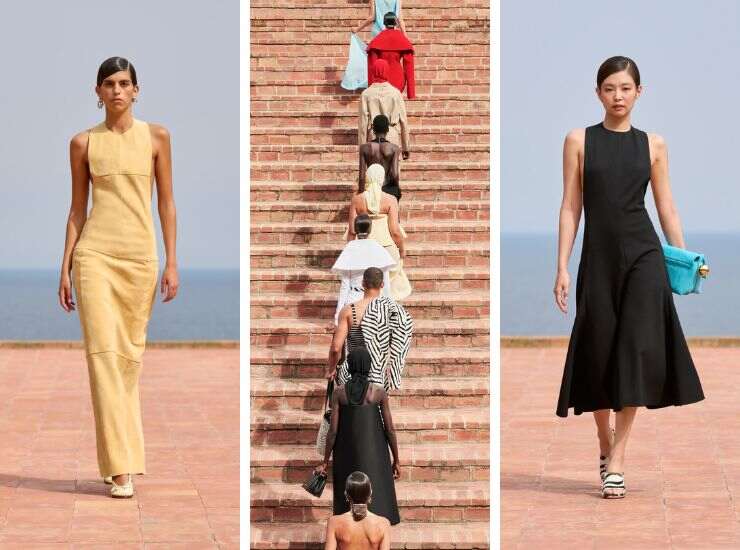 Capri, che continua ad attirare a sé come un magnete con la calamita il panorama glam internazionale, questa volta ha accolto a braccia aperte l’ultima collezione di Jacquemus. Nello specifico tutti a Casa Malaparte, una struttura architettonica preziosa sull’isola con affaccio diretto sugli iconici Faraglioni. La scelta, di casuale, ha ben poco. Porte l’ha scelta per via del film Il disprezzo di Jean-Luc Godard, la cui estetica ha poi ispirato il suo stile 15 anni prima. Infatti, poco prima della sfilata, incontrando la stampa il fondatore di Jacquemus ha precisato perché ha preferito offrire un incontro più raccolto: “Non volevo fare uno spettacolo, volevo fare una collezione sulla casa. E [la famiglia ha detto] nessuno lo ha mai proposto. Hanno detto di no a molte persone perché non vogliono usare la casa solo come luogo per spettacoli“.