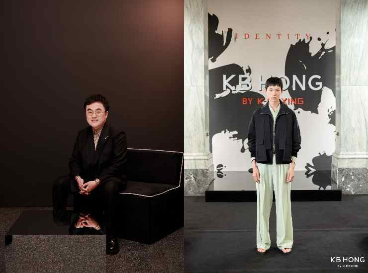 A sinistra Boming Hong, fondatore di KB Kong, a destra una proposta del brand Spring/Summer 2025, Courtesy of Press Office