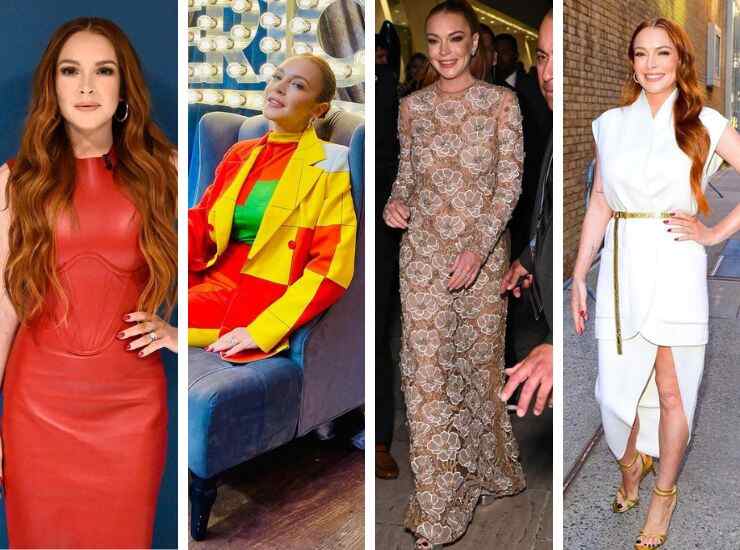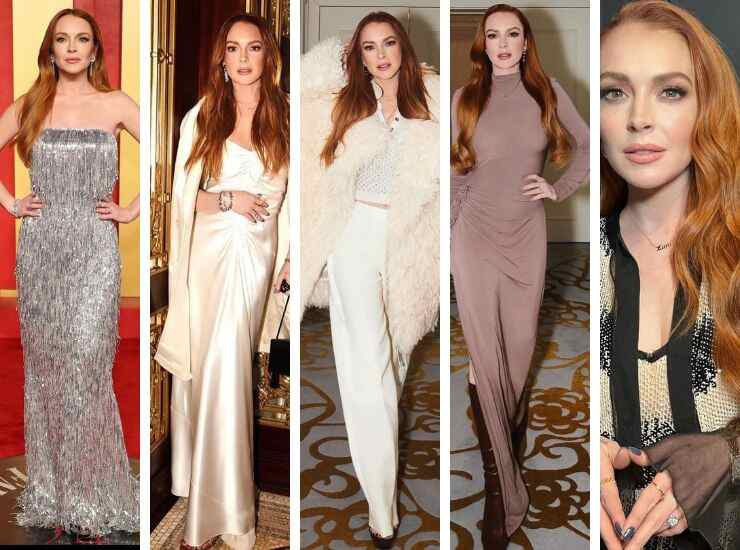Tornata alla ribalta in quel di Hollywood, Lindsay Lohan non ha rinunciato neppure al red carpet. L’ha dimostrato di recente in occasione dei Vanity Fair Oscar Party 2024. Sul tappeto rosso ha sfoggiato un look abbagliante, in paillettes argentate che cadono a cascata lungo tutta la silhouette. Un abito senza spalline e senza strascico, firmato Balenciaga Couture. Vi ha abbinato décolleté di Louboutin. In occasione della première di Irish Wish per Netflix, invece, ha sfoggiato diversi look, come quello bianco perla di John Galliano, un look d’archivio in raso con scollatura a cuore. Vi ha abbinato décolleté di Casadei.