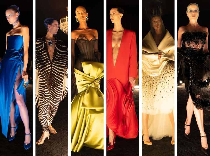 Si rinasce come una Fenice, spaziando tra una palette armoniosa di black&white, con l’aggiunta di pizzo, chiffon e delicatissime paillettes. E ancora non si rinuncia neppure al colore, spaziando dal blu elettrico al rosso ciliegia. E non passa inosservato neppure il ritorno dell’animalier in passerella, con il tocco zebrato che avvolge morbidamente la silhouette dettando tendenza. Tempo anche di bustier con Schiaparelli Haute Couture, che fasciano i corpi delle modelle alternandosi tra nude e pizzo nero.