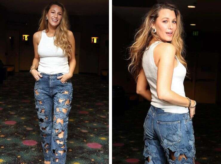 Per Blake Lively il floreal look ha un sapore diverso grazie a It Ends With Us. Impegnata con la promozione del film, ha scelto un altro look ultra chic che detta immediatamente tendenza nella sua casualità. Oltre al top total white smanicato a costine, ha puntato tutto sui jeans con dettaglio cut out: è questa, infatti, la vera chicca. I jeans propongono una trama floreale bucherellata fronte-retro e portano la firma di maison Valentino. Considerato che l’estate è ancora lunga e manca ancora un po’ al debutto di It Ends With Us sullo schermo, siamo certi che l’attrice continuerà a proporre floreal look per tutta la stagione.