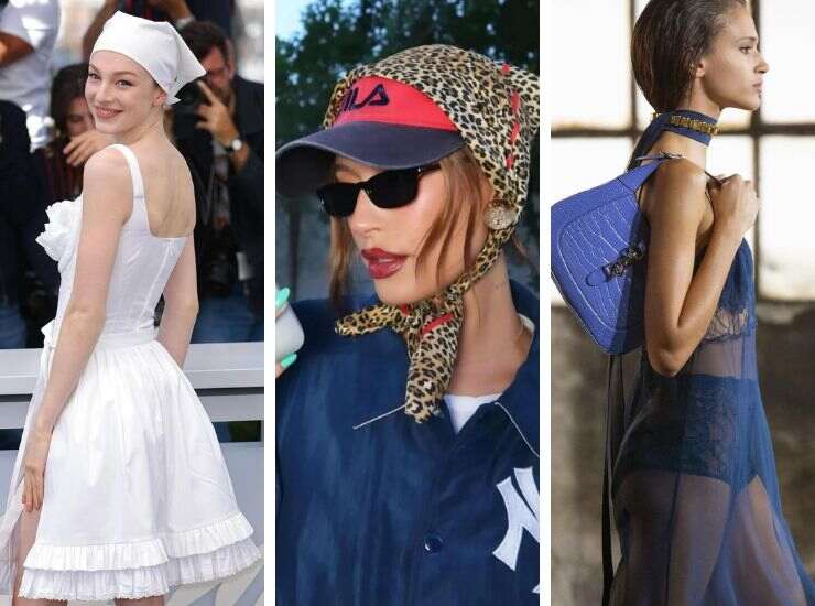 Un’idea retrò è anche il micro foulard effetto cuffietta scelto da Hunter Schafer, in pendant con il minidress total white proposto al photocall del Festival di Cannes. Un look che porta la firma di Prada, maison che ha già dimostrato di essere particolarmente affascinata dal trend foulard. Nicole Kidman, invece, ha optato per un foulard choker, una creazione audace di Gucci che rilancia il trend ma lo interpreta. Ed infine anche Hailey Bieber non ha resistito. Regina delle tendenze, aveva già sfoggiato l’accessorio virale a trama animalier.