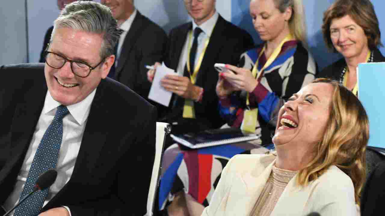 Meloni col neo premier inglese Starmer. Foto Ansa/Epa Chris Ratcliffe