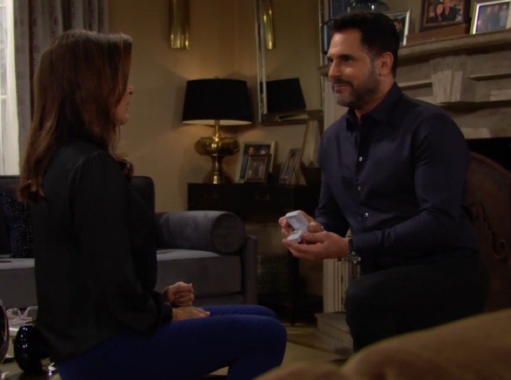 Nella puntata di domenica 4 agosto, Bill prenderà una decisione inaspettata: è intenzionato a chiedere a Sheila di sposarlo. Dal canto suo, la Carter si mostrerà felicissima della proposta dello Spencer e andrà subito da Deacon per rivelargli tutto. Ciononostante, la perfida rossa inizierà a ragionare sulla situazione: oltre a dover chiudere definitivamente con lo Sharpe, infatti, la donna inizierà a sospettare del magnate. Secondo lei, infatti, Bill sta tramando qualcosa.