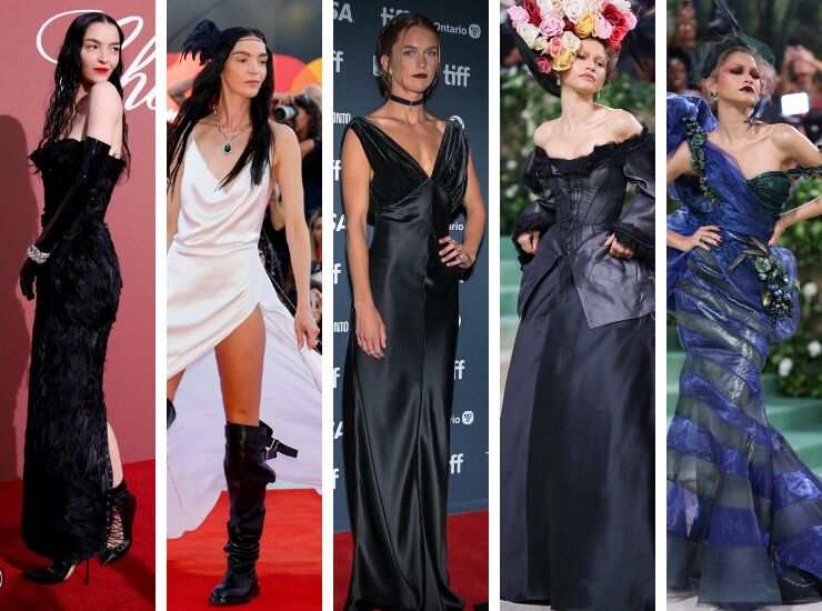 Anche Mariacarla Boscono ha seguito la tendenza e anche in netto anticipo. Sul red carpet della Mostra del Cinema di Venezia 2024, ha proposto un gothic look seppur reinpretato in chiave moderna chic, indossando una creazione di Ann Demeulemeester. All’amfAR Gala di Cannes 2024, invece, ha sfoggiato velluto e piume diDilara Fındıkoğlu. Estremamente gotico è anche il look proposto da Chloe East in occasione del Toronto International Film Festival. L’attrice ha proposto un abito in velluto nero di Markarian, accompagnato da un rossetto ton sur ton e chocker. Gotico, ma fiabesco è invece quello scelto da Zendaya. Sul red carpet del Met Gala 2024, l’attrice ha stupito con due look che inseguono il trend.