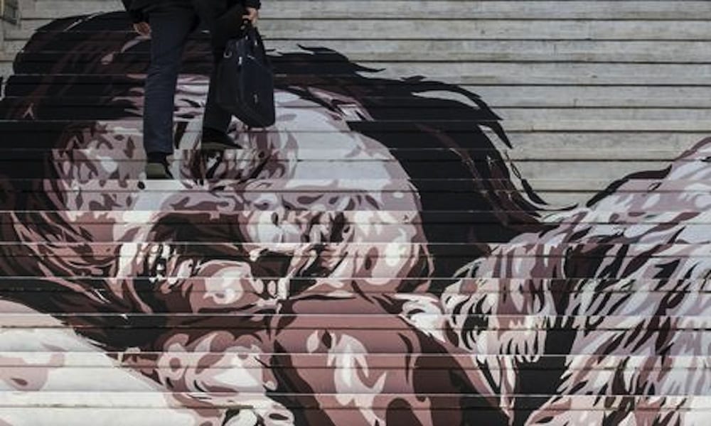 A huge mural depicting Italian actress Anna Magnani, realised by Italian artist Davide Vecchiato (not in the picture), is seen on the staircase of a local market in Rome, Italy, 15 June 2016. ANSA/ MASSIMO PERCOSSI