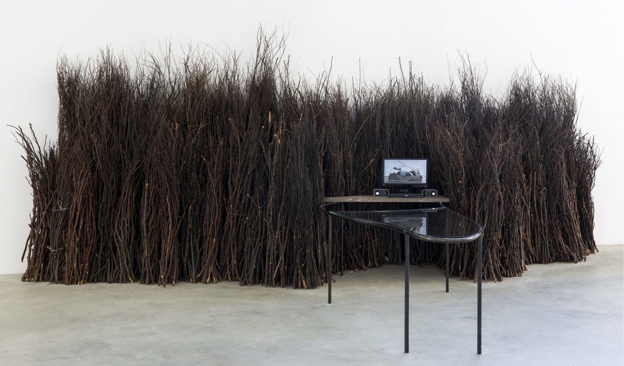 Mario Merz Foresta con video sul sentiero 1995 Struttura metallica, vetro, pietra, fascine, monitor con video Dimensioni variabili Courtesy: Collezione Merz, Torino Foto Renato Ghiazza