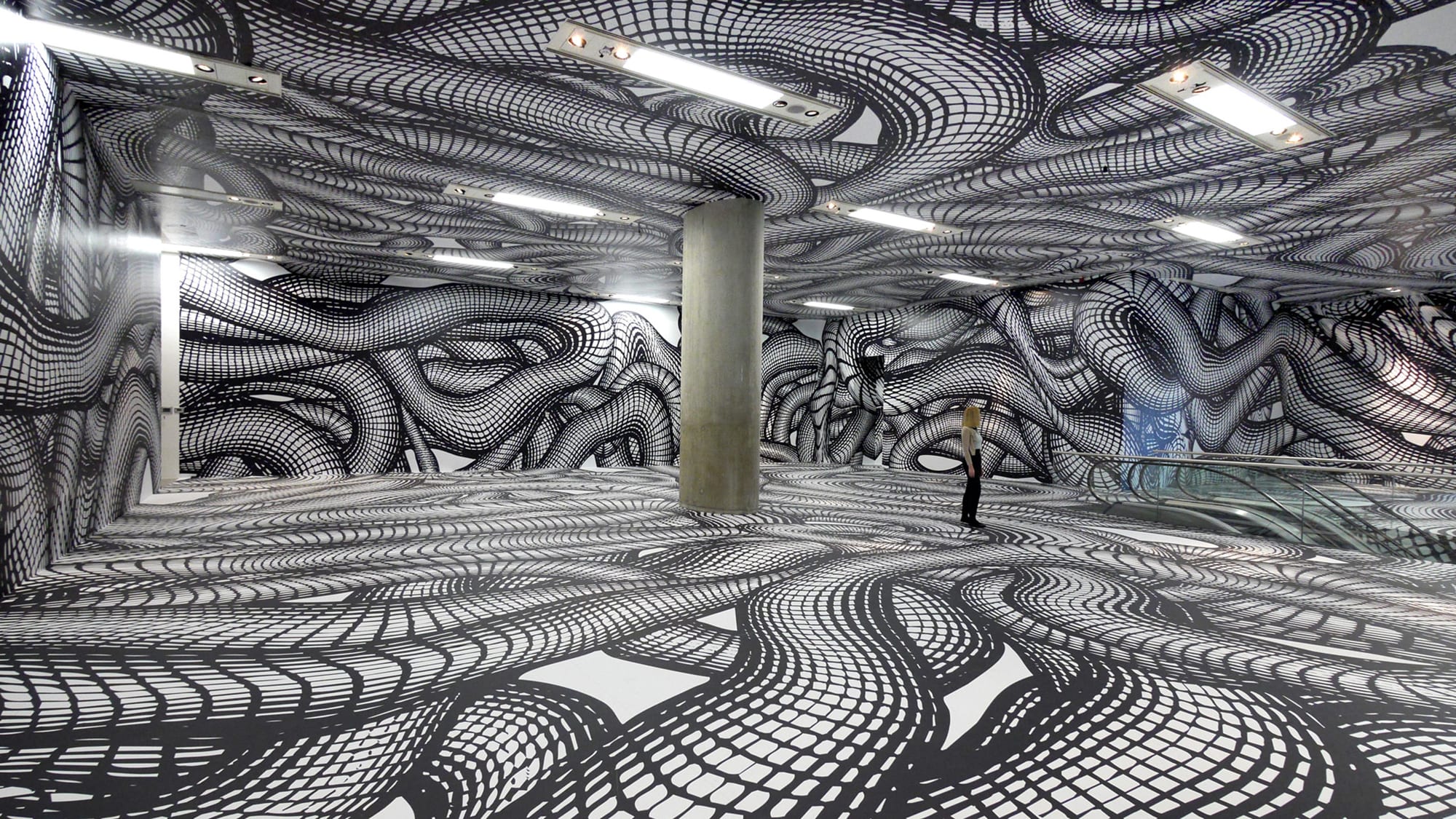 Peter Kogler (didascalia della foto non corrisponde all’opera in mostra, opera site specific)