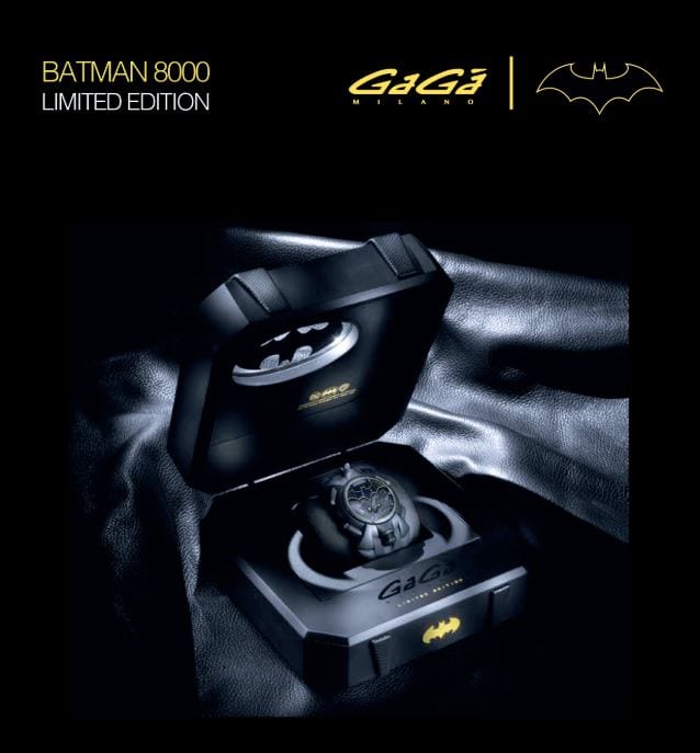 Certo per i supereroi il tempo è relativo, ma l’orologio Gagà Milano sa misurarlo in modo decisamente unico! Realizzato in edizione limitata di soli 300 pezzi, l’orologio double-face ha una doppia identità; dispone di una cassa centrale 48mm in acciaio e trattamento pvd nero dal design avveniristico che ricorda la “Batmobile” del supereroe della DC Comics. Dalla forma aerodinamica robusta e imponente, la cassa è dotata di due movimenti al quarzo e presenta due corone posizionate ad ore 12 e 6, create per selezionare l’orario e il fuso orario desiderato.