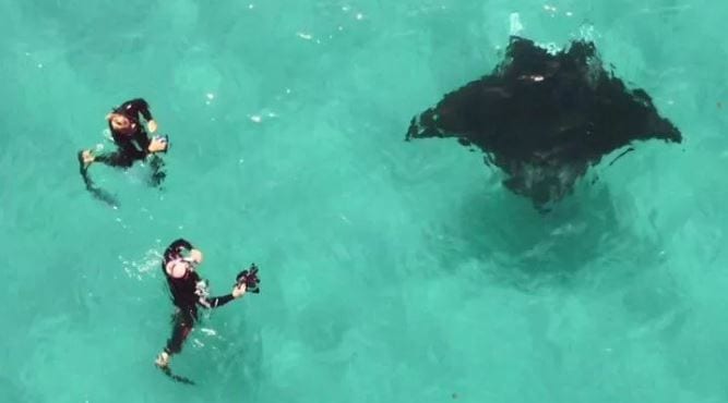 I due sub, che hanno aiutato la povera Manta a liberarsi dell’amo conficcato nell’occhio, hanno raccontato la loro incredibile esperienza. Jake si è immerso molte volte per provare a liberare Freckles, e l’animale ha aspettato pazientemente che lui finisse. L’uomo racconta: Ho fatto un’immersione per vedere come stava. Lei si è fermata e ha nuotato sopra di me per circa 30 secondi. Ci ho messo un po’ di tempo per liberarla, ma adesso la Manta sta bene”. Il nome Freckles, cioè lentiggini, le è stato dato dagli stessi sub. Il curioso appellativo, è derivato dallo strano disegno che ha sulla sua pancia. (Continua dopo la foto)